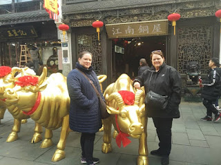 This is our 6th Chinese New Year in China and the first in Hangzhou. And to make it even more special, my Mum and my daughter's fiance' and his mother joined us this year. What a good choice in time of year as HZ looked so beautiful draped in red for the New Year. We met them at HZ Xiaoshan International airport and brought them back to the Huangchen International hotel to freshen up. No rest for the wicked. Ha Ha. Once we were settled we decided to visit the Wushan market that is right behind the hotel. Great location. At the market it is good to have some good bargaining skills. Kyle was quite proud of bargaining his first buy in China.